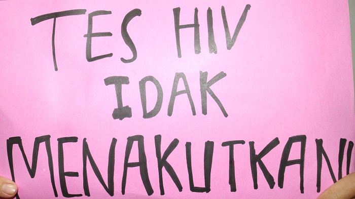Entering the testing facility was daunting. Ibu Bonita worried someone she knew might see her enter or that someone who worked there might recognise her. But again, she focused on the wellbeing of her daughter and knew she had to be brave. Later, Ibu Bonita made a poster stating that ‘HIV tests are not scary’ to encourage other women to get tested.